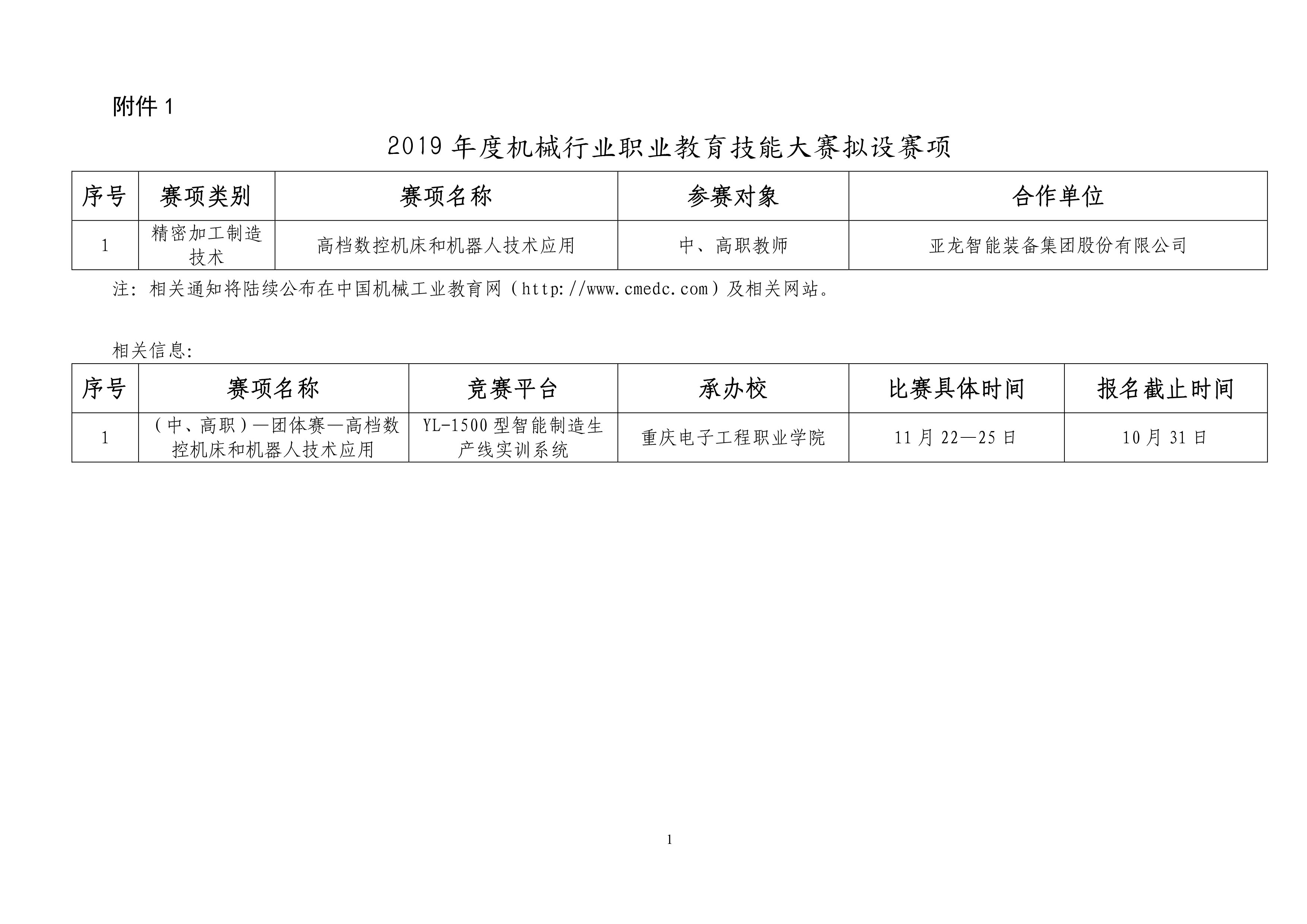 关于公布2019年度机械行业职业教育技能大赛拟设赛项的通知
