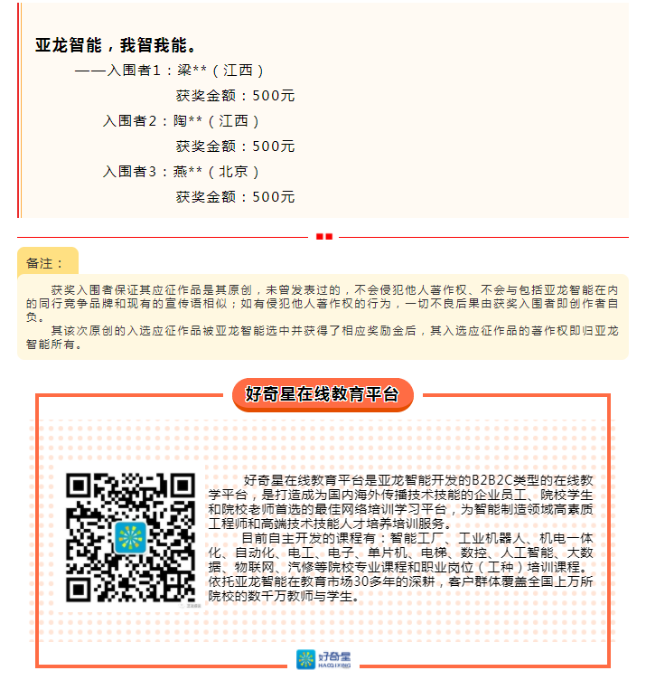 【亚龙智能 · 广告语揭晓】万元奖金征集令结果公布!