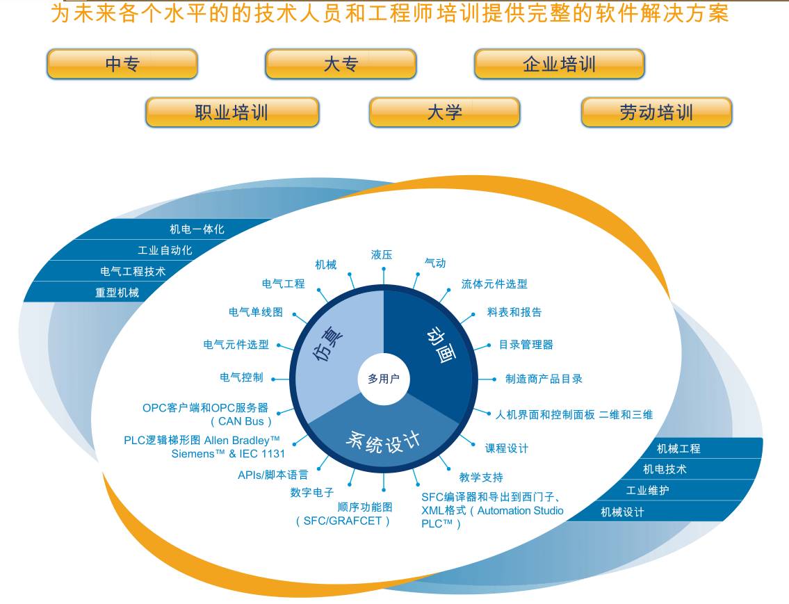 本次展会,亚龙将展示发密科Automation Studio™。该软件集成了液压、气动、PLC、电气工程技术、机电一体化、机械工业、重型机械、机电技术、工业维护、机械设计等技术。